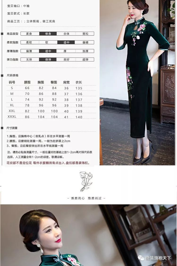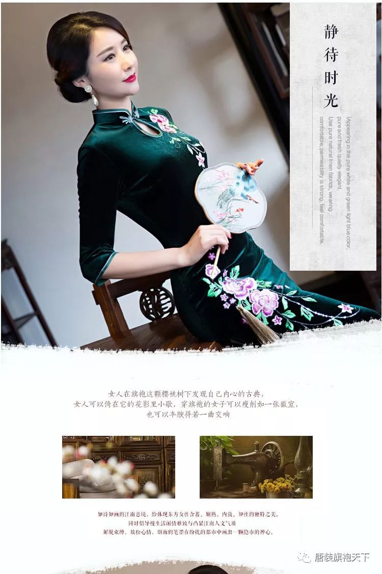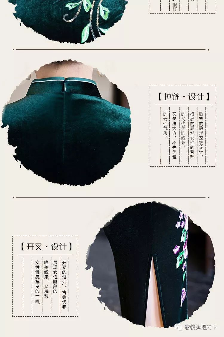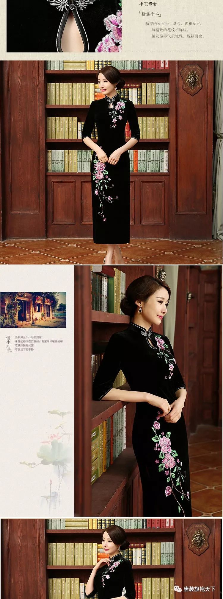 MES808复古秋季新款精致绣花滴水立领丝绒旗袍裙