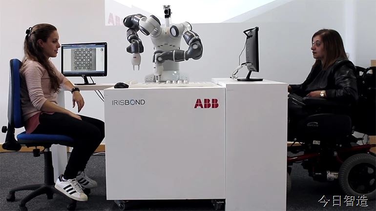 工业机器人四大家族之一瑞士ABB联手西班牙眼动追踪软件开发商Irisbond,共同打造了一款可以让人用眼睛控制的机器人。