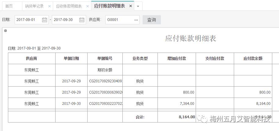应付帐款明细,随时了解资金预算。