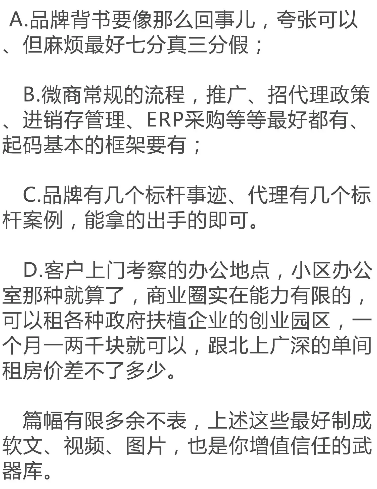 像当前动不动一个不知名的微商品牌,都敢在招代理上瞎吹自己月入过亿,我相信肯定有不知名的牛人在悄悄的赚钱,也肯定有类似的战绩,但一个连代理政策都是乱的、品牌背书除了PS就是软文、ERP进销存之类的管理软件都没有,连最基本做代理做生意的底子条件都没有,你敢信?