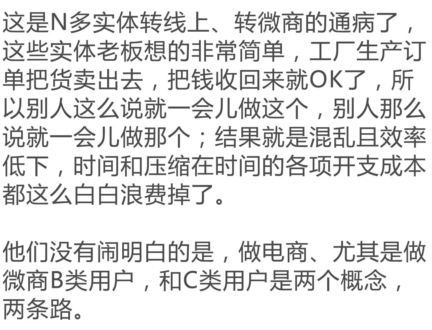 希望实体转线上电商微商的众位实体老板有机会看到本文,请耐心把上面这段话多读几遍,少走几遍弯路,也许你就省下了好几百万的开销,真的不夸张哦。