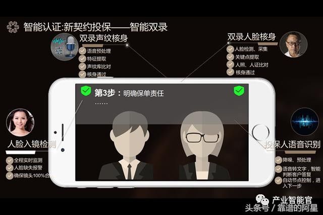 智能认证把投保时间缩短30倍,大幅提升代理人的生产力;在“新契约投保”中首创投保人+代理人实时“智能双录”,代理人须严格遵循操作流程,用户如不同意可随时喊“Cut”中止认证进程,质检成功率提升65%,这大大降低保险公司运营成本,同时保留了可资调取的一手大数据。这一“入口端”的创新从“保单制”升级为“实人制”,在全球保险业中尚属首次。
