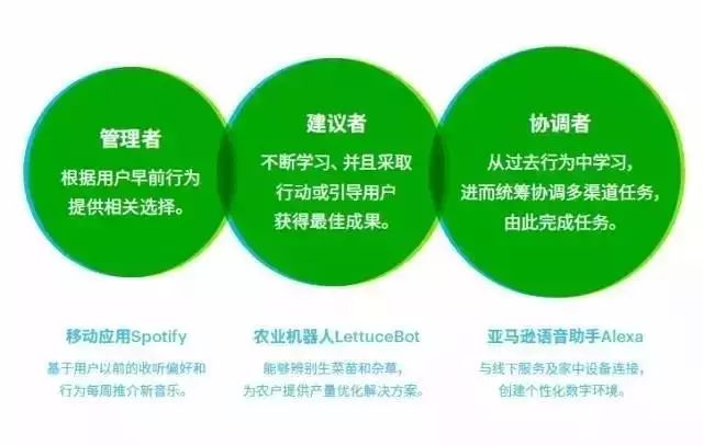 目前,人工智能已应用到各种场景,打造全新的用户体验。最简单而言,它可以帮助用户管理内容——移动应用Spotify便会根据用户的聆听偏好推荐新的音乐;再复杂一些,依托人工智能的农作物管理系统正在帮助农户提高产量。