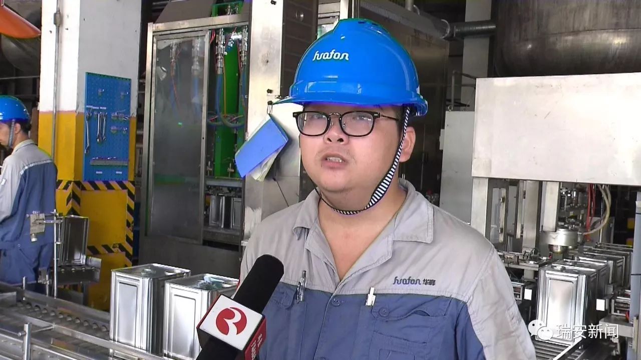 实际上,类似 B 料自动灌装流水线的技术变革正在华峰新材料厂区各处上演。在印铁制罐工厂,4 条制罐流水线正在开足马力生产,圆柱形的铁皮进入流水线后一秒“变身”成了方形罐体。