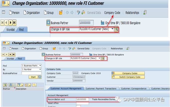 一旦将BP角色扩展到FI,表KNA1将被更新,并且财务可以直接在FI中过账,例如使用事务码FB70等。