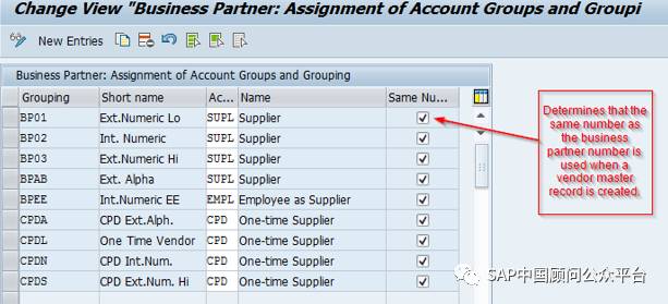 另外,BP分组与供应商/客户帐户组须进行映射。