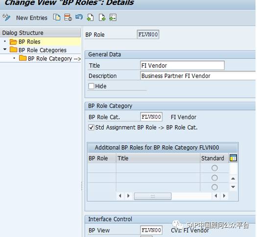 选择一般业务合作伙伴角色和分组,此分组与客户/供应商编号范围相关联,此分组是连接供应商/客户和BP组以及下面详细说明的号码范围的关键。
