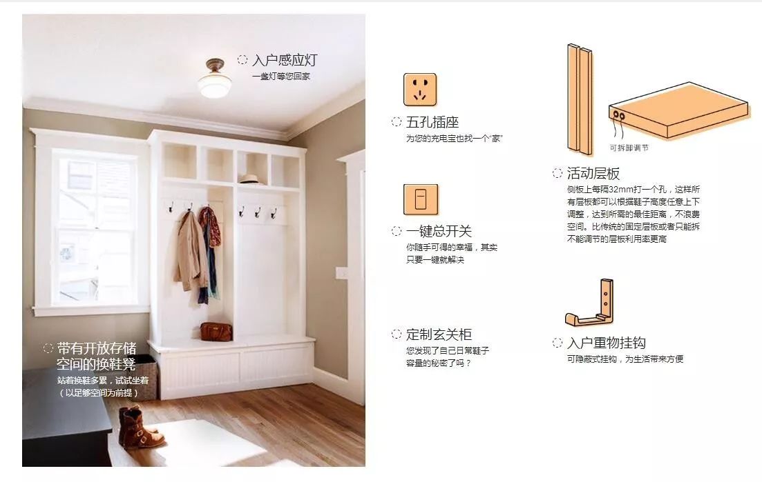 设置抽屉:抽屉可存放鞋油、鞋刷、雨伞、剪刀、笔等小物件,方便进门拿取及快递签收。