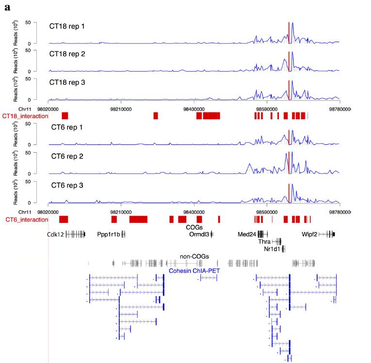 Xu Y, Guo W, Li P, et al. Long-range chromosome interactions mediated by cohesin shape circadian gene expression[J]. PLoS genetics, 2016, 12(5): e1005992.