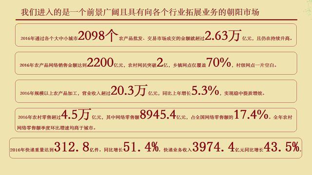 这是一份有关农副产品一键买卖的市场数据调查,其中光农产品的销售市场就高达:3.52万亿。而实现农产品一键直销的同时,也将进入农村的零售市场以及物流市场和农产品加工的销售市场。