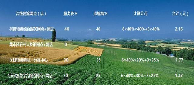 乡镇网点有一个调度本乡镇农副产品的功能,农产品只有通过她才产生协同服务费,拟例中这只鸡不经过他自然没有任何费用。但本乡镇农副产品流通经过她时,乡镇网点将根据与该网签订的协议,选择自负盈亏进行分拣,或选择只收服务费的零风险分拣。这也是为什么区县物流综合服务中心的分拣中心,明明不配送货物,却要收取35%的运输费。原因就在运输成本中包含了农副产品的损耗。比如说这只鸡的损耗,拟例的1.05元根本就不够。但又有很多农产品的损耗低于35%的运输费消耗比例。