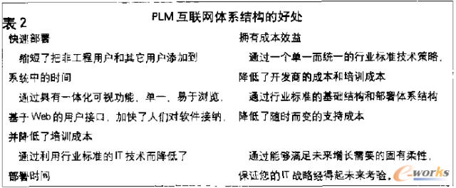 PLM互联网体系结构经过精心设计,它可以快速部署,能够满足当今的可用性、可伸缩性、数据完整性、可扩展陆、安全性以及可互操作性的需求,从而适应整个数字化产品价值链的增长(如表2)。