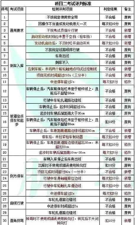 以下为科目三评判标准,主要变化见加粗标注文字。