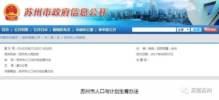 2017年8月7日《苏州市人口与计划生育办法》正式通过并公布了!