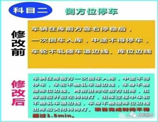 比如,科目二的倒车入库和侧方停车,此前的标准只是规定了具体的操作规范,但新的标准却明确了完成操作的时间限制。其中倒车入库完成时间不能超过210秒,侧方停车完成时间不能超过90秒,一旦超出时间即判为不合格。