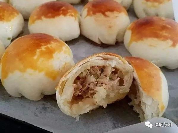 中秋前后就能在长发西饼的门店前发现长龙般的队伍了,基本上就是苏州人在排队买鲜肉月饼。鲜肉为馅,肉汁鲜美,最大的特色应该就是现场烘焙制作了,现吃才是最美味。
