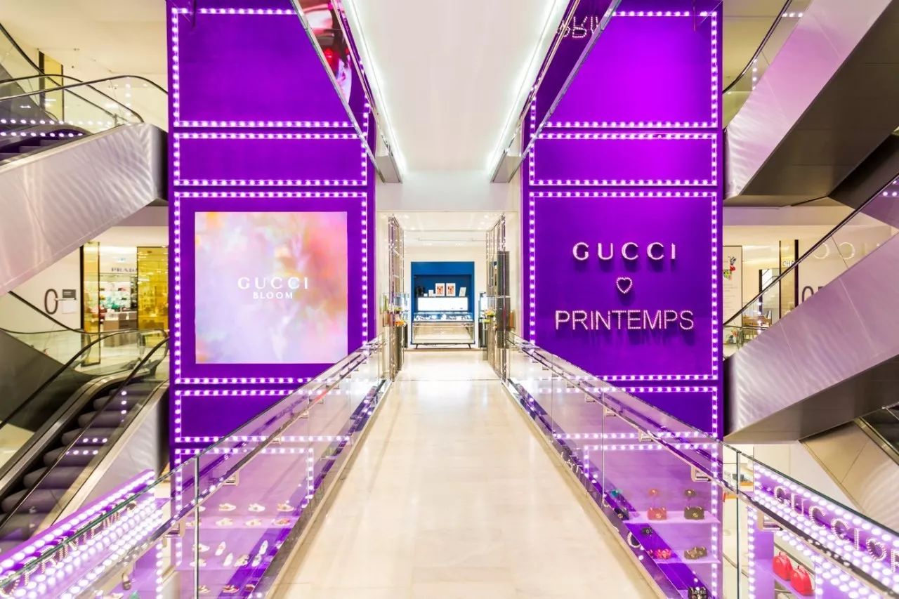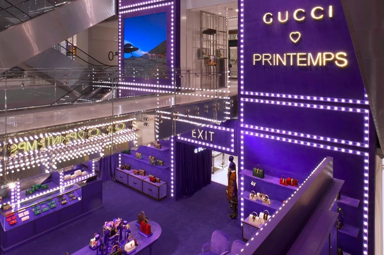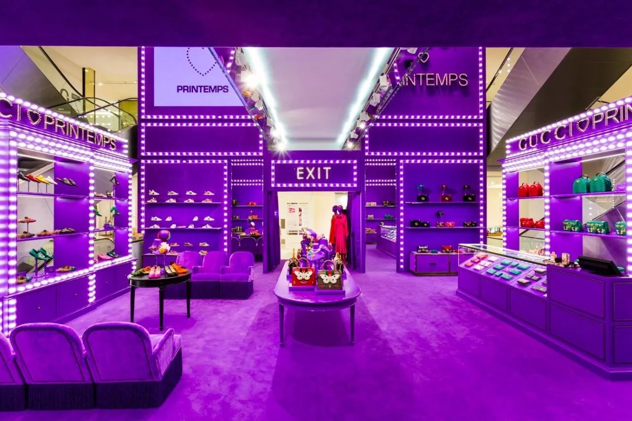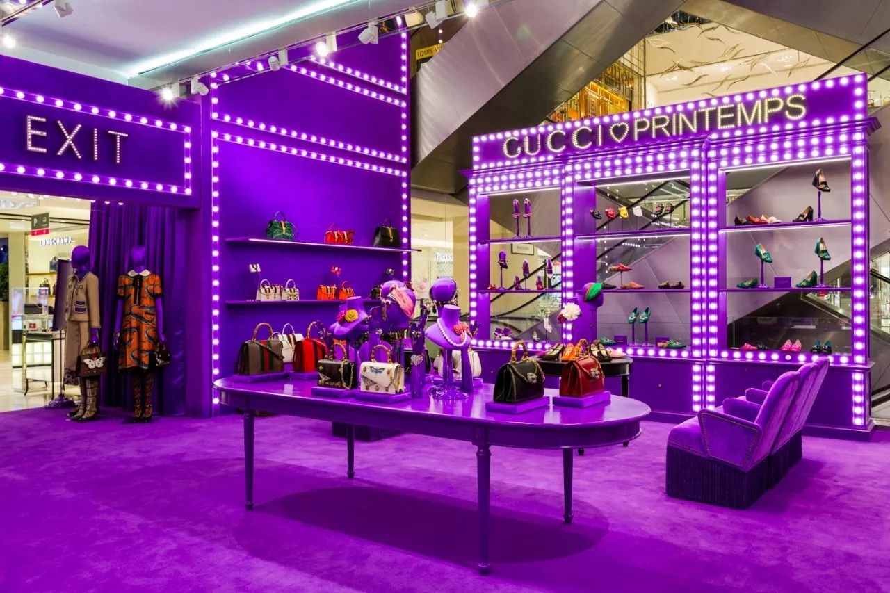 事实上,几乎整个春天百货的中庭都被Gucci电影院承包了,空气都变成了深紫罗兰色,深深吸一口,全是巴黎旧时光的味道~