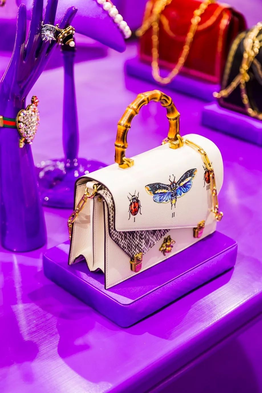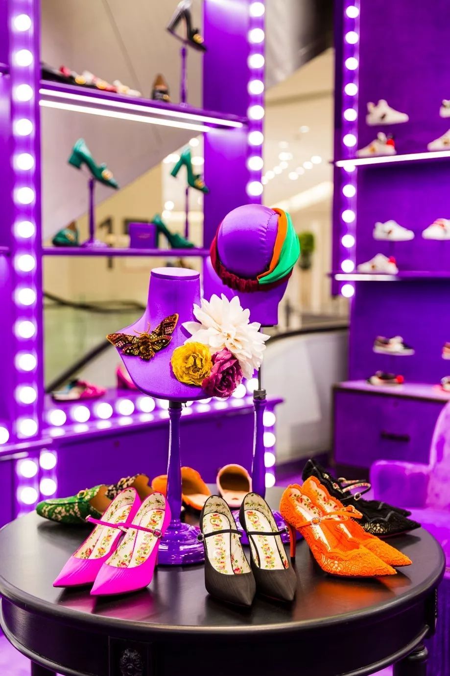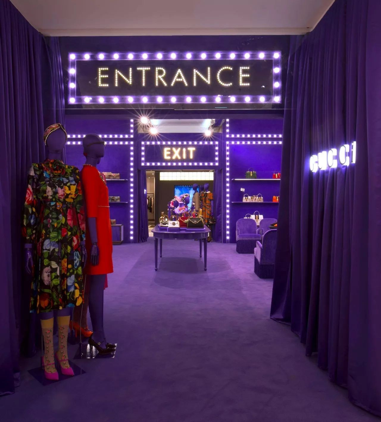 事实上,几乎整个春天百货的中庭都被Gucci电影院承包了,空气都变成了深紫罗兰色,深深吸一口,全是巴黎旧时光的味道~