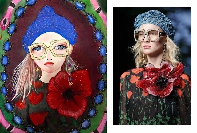 在Instagram上看到画风“看起来天真幼稚却又迷人得不行”的画,干脆就直接邀请这位当时毫无名气的画师去看Gucci秀,请她以这场秀为灵感来作画,然后在Gucci大展里为这些画准备了专属展厅。