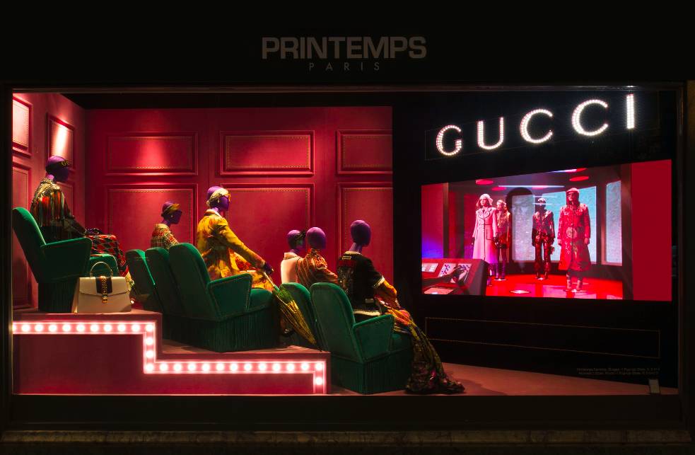 Gucci电影放映厅被设在法国春天百货沿奥斯曼大街的橱窗里。