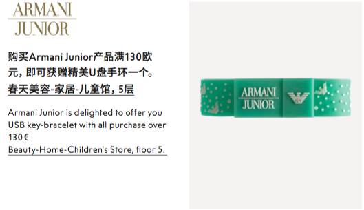 买阿玛尼童装满130欧元就送一个u盘,这应该是最实用的一条啦~