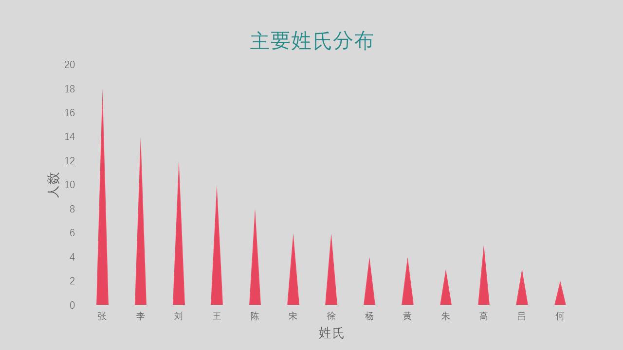 泱泱百家姓。本届研会张、李、刘、王几大姓数量占优,陈、宋、徐三姓也不甘示弱,紧随其后。