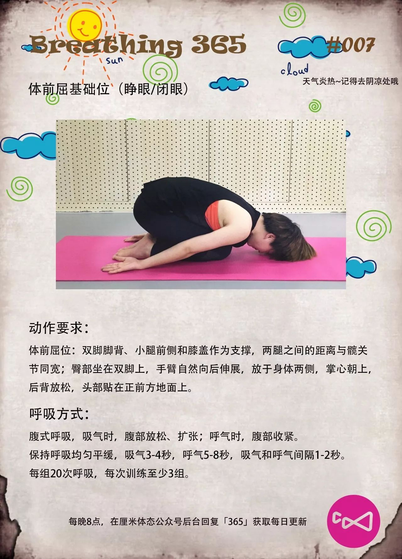 正确的呼吸模式是良好体态以及得到更有效训练效果的基础,每人每天都应该进行呼吸训练,以下每个动作每天训练10分钟哦,更多呼吸训练方式,请关注【厘米体态】,回复【365】即可获得。