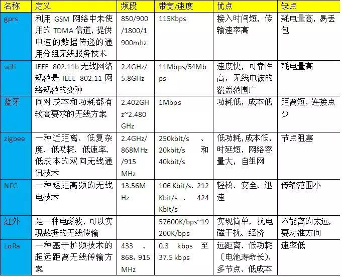 数据链路层通信技术有近距离通信、远距离蜂窝通信、远距离非蜂窝通信、有线通信,对比一下其中几种比较常见的通信方式。