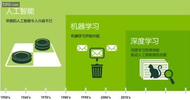 从上图可知,人工智能是最早出现的,也是最大、最外侧;其次是机器学习,稍晚一点;最内侧,是深度学习,当今人工智能大爆炸的核心驱动。