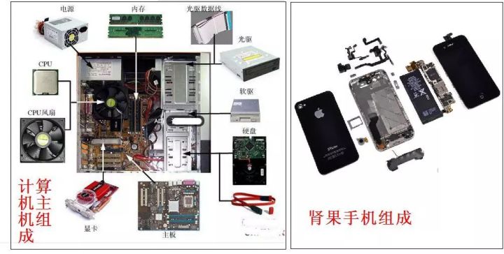 拆开计算机主机或手机,可以看到下图的硬件构成。