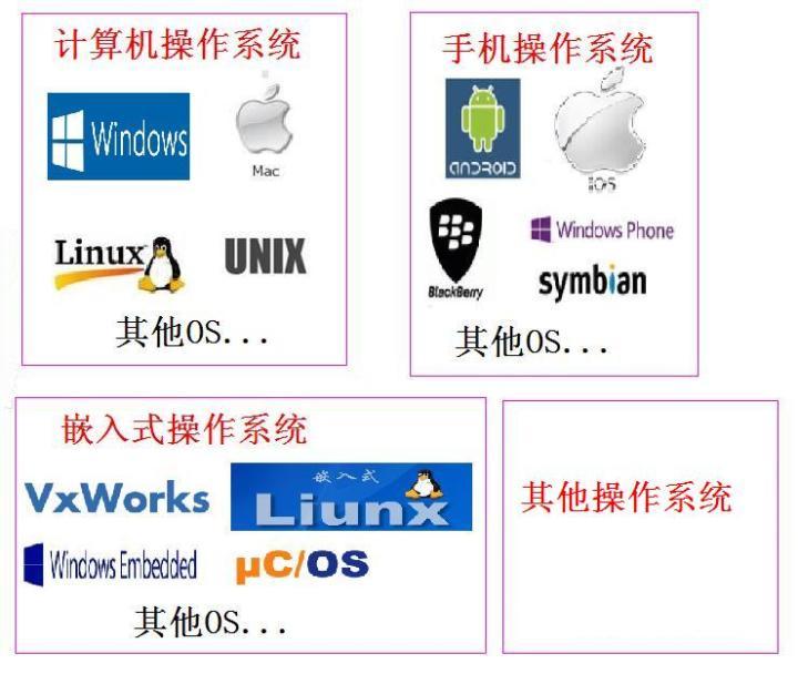 目前除了常见的Windows XP系统,操作系统的种类很多,依据不同的应用场合可以分为:计算机/服务器操作系统、手机操作系统、嵌入式操作系统、其他操作系统。