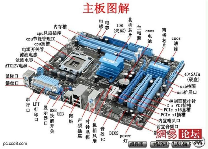无论计算机还是手机,最主要还是各自的主板部分,主板上都有啥,请看下面两个图。