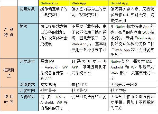 而不同功能的APP种类很多,但是 APP类型基本只有三类:NativeApp、Web App、Hybrid。