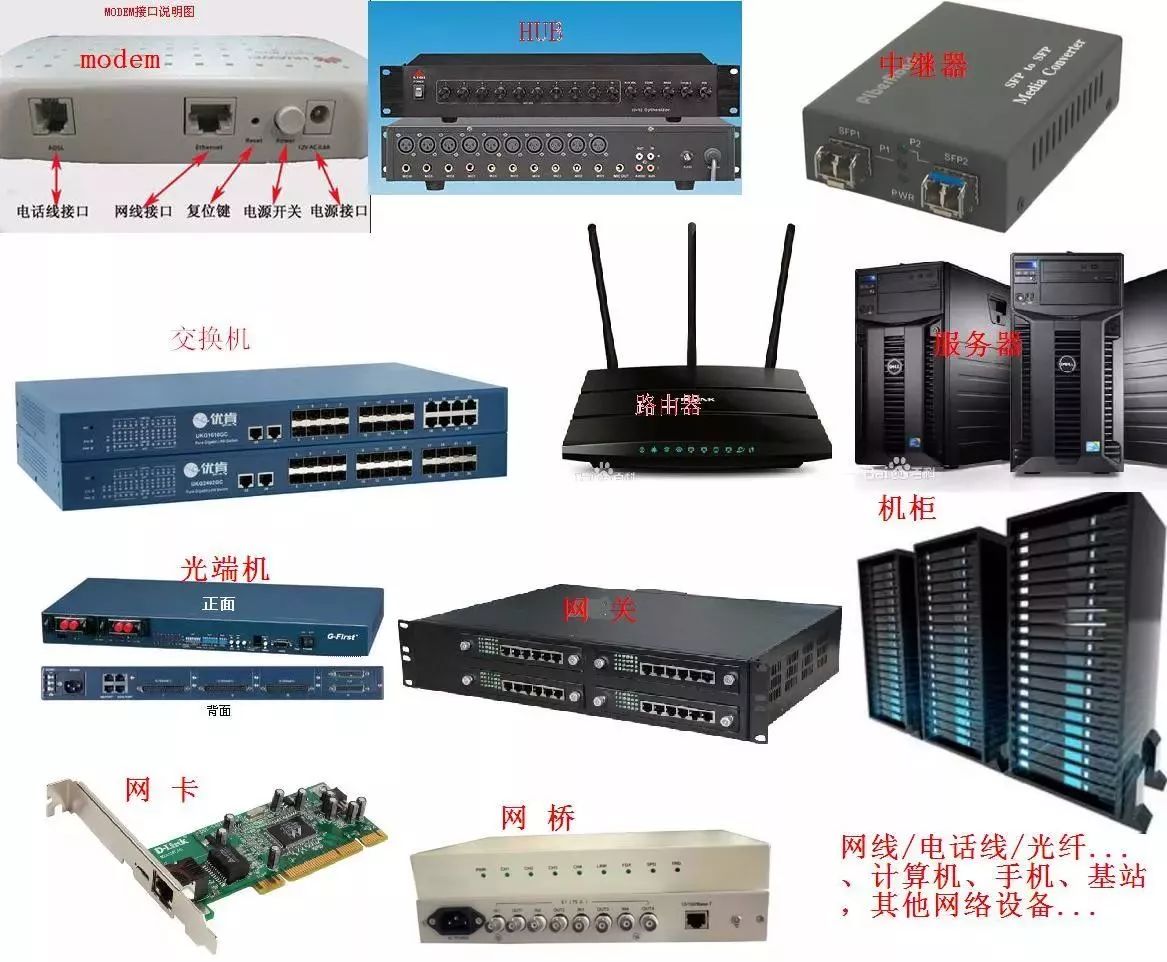 网络硬件请看下图(小宅画的,如有问题请别骂小宅),具体用途自行查资料吧。