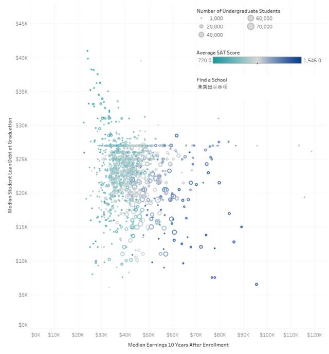 横向为未来收入,纵向为就读贷款,点半径代表学生数量