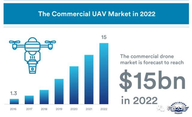 2022年,商业无人机行业的市场总值将达150亿美元/图 来源网络