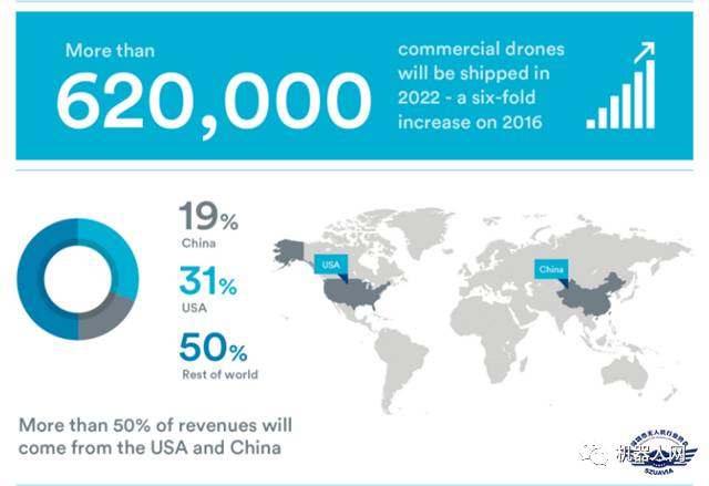 2022年,商业无人机出货量将达62万架,中美市场总值占全球50%以上/图 来源网络
