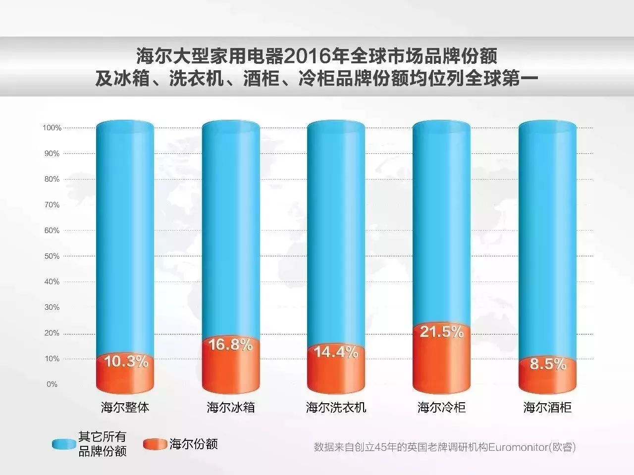 ·自2009年以来,海尔大型家用电器品牌销售份额占10.3%,连续8年蝉联全球第一。