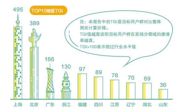 已婚和已育用户在“超级黄金周”出游集中度较高(TGI>100)。