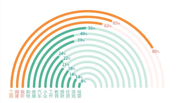 社交和旅游类APP以外,用户青睐工具、阅读、视听类APP。