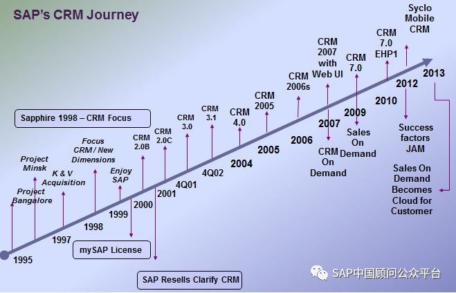 我们先从SAP过去的历史和CRM的工作开始。自1995年以来,SAP一直在寻求进入CRM领域,真正的推动是收购德国Salesforce Automation公司Kiefer&Viettinger及其在班加罗尔的开发中心。这成为我们现在所熟悉的SAP CRM 解决方案的前身。 之后,SAP进入CRM云市场,用以对付2007年至2008年的Salesforce.com。由Sales OnDemand,Service OnDemand和以后的Social OnDemand组成的Customer OnDemand(CoD)演变成我们现在所知道的SAP Cloud for Customer。