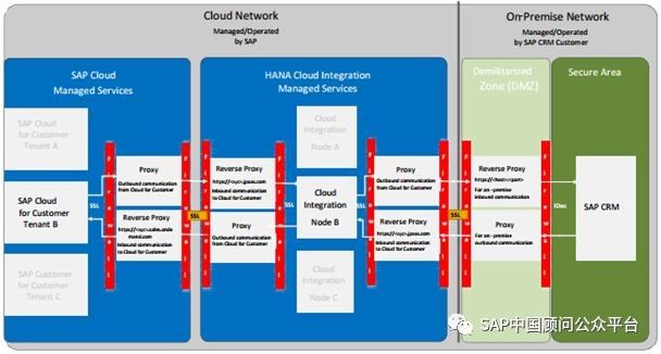 SAP C4C的整体架构是多租户架构,这意味着SAP C4C和Integration组件本身与其他客户共享。 还有一个客户的单租户模式,这是一个私人版本private edition,需要额外的费用。 多租户模式意味着每当SAP升级或发布修补程序时,它可能会覆盖一些基于SAP C4C解决方案构建的自定义解决方案。 这是客户多租户模式最常见的问题。 虽然云解决方案推动标准化,但客户仍然需要对其行业和公司进行的具体修改。