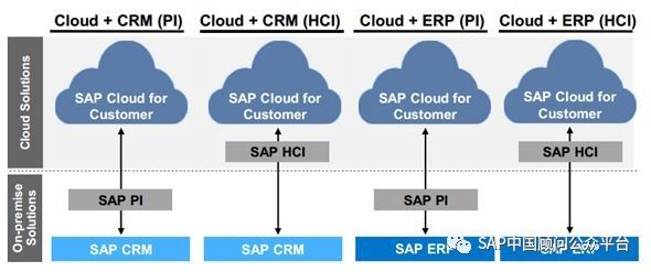 SAP提供了将SAP C4C与内部SAP ERP和SAP CRM集成的两个选项。