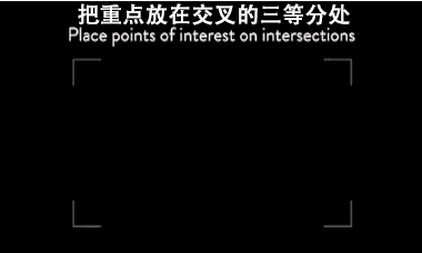 在摄影三分法中,摄影师需要将场景用两条竖线和三分法图示两条横线分割,就如同是书写中文的“井”字。这样就可以得到4个交叉点,然后再将需要表现的重点放置在4个交叉点中的一个即可