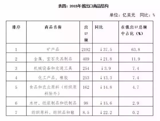 我们印象中强大无比的俄罗斯工业,现在只剩下军工可以撑门面了,以2015年俄罗斯出口为例,出口总额3434亿美元,其中石油就占了896亿美元,占了26%,再加上天然气,煤炭,木材,皮革,农产品和食品等各种自然资源。占了出口总额的85%以上。