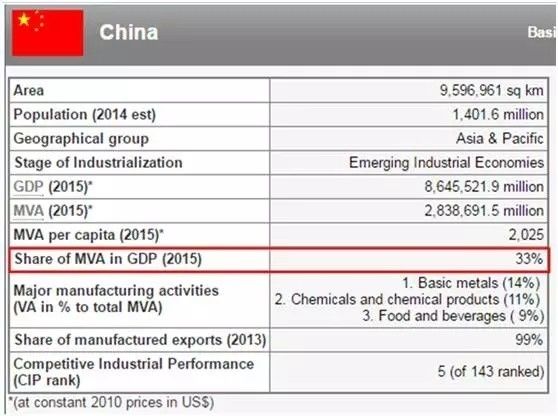 我们登陆联合国工业发展组织,可以查到工业增加值MVA(manufactured value added)占GDP的比例。