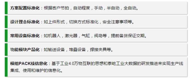 自动化率低、产品单一、产能低、人工产品切换、交付周期长、产线智能化低、产品质量不稳定……这些都是目前动力电池模组和Pack环节存在的现实问题。