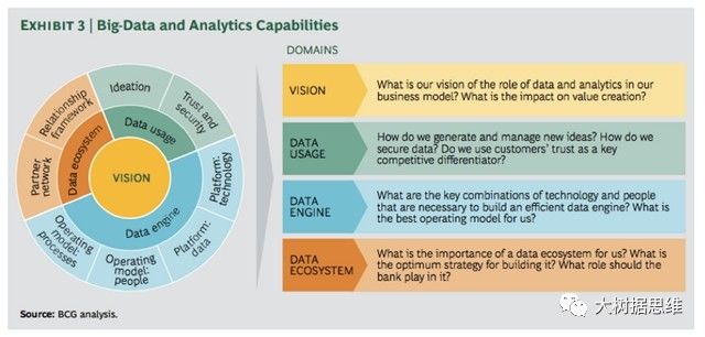 使用聚焦重点的方式来培养能力是重要的,因为在这个时代,能够发挥作用的大数据相关技能、流程和技术简直多到不胜枚举。确定大数据方案,应该利用一份涉及到公司运营各个方面的能力清单。BCG将这些能力分为四组: