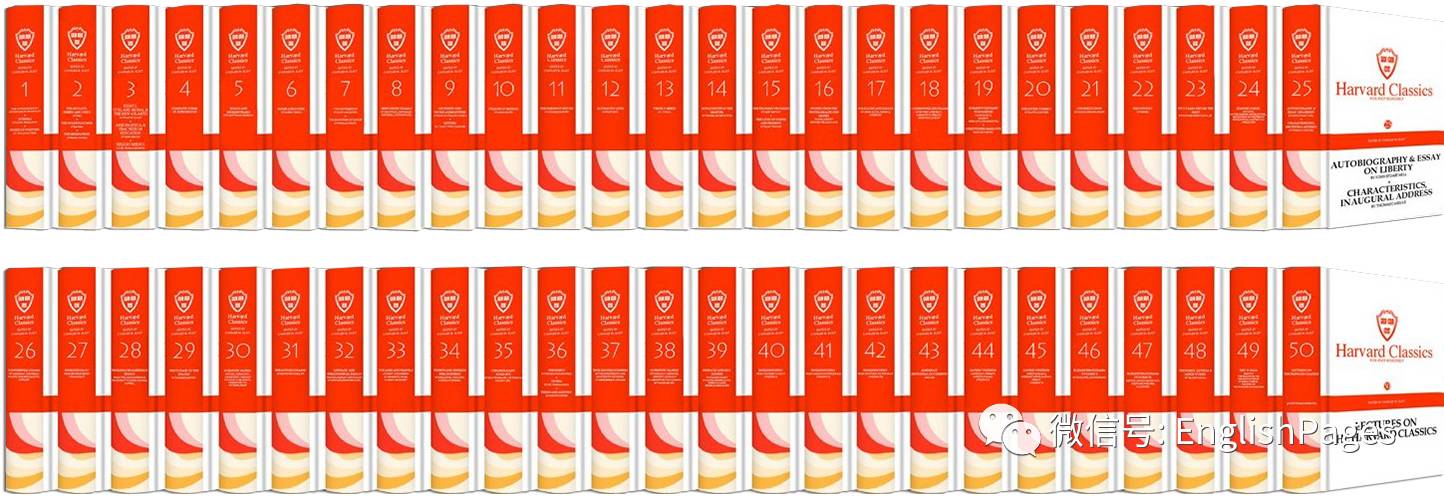 哈佛经典,共51卷,亦名“五呎丛书”,胡适先生称之为“奇书”。全套丛书由美国哈佛大学第二任校长查尔斯 · 爱略特亲自选编,汇粹302位伟大智者的经典之作,涵盖科学、哲学、诗歌、戏剧、政论、演讲等名著,旨在为美国高中和大学生进行通识教育提供一套经典读物,训练他们成为有教养之人。