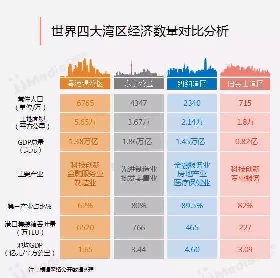 2016年大湾区经济总量增长了7.9%,深圳更高达9%。而香港特区本地生产总值将近2.5万亿港币,同比增长1.9%。预测未来6年内,大湾区经济总量将达到14.76万亿元,有望在5年内超越京阪神湾区,成为世界经济总量第一的湾区。